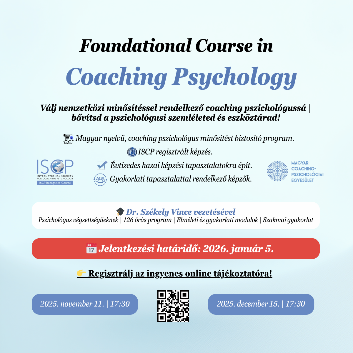 A coaching pszichológus képzésről bővebb információ: https://tinyurl.com/2tkf46e3